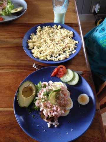 Räkmacka ikväll och omelette till Gustav